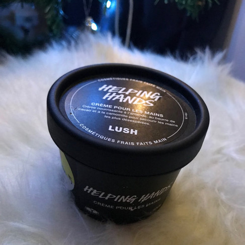 Cette crème pour les mains viens de ma marque préférée, Lush, comme vous l'aurez reconnu avec leurs fameux pots noirs. La crème Helping Hands hydrate merveilleusement bien les mains toute la journée (en plusieurs applications of course). Son odeur se rapproche de celle du cacao et du miel. Je vous la recommande totalement pour ne pas avoir les mains sèches durant l'automne/hiver. Vous pourrez la retrouvez en magasin ou sur le site de la marque au prix de 12,95€ pour un pot de 100g.